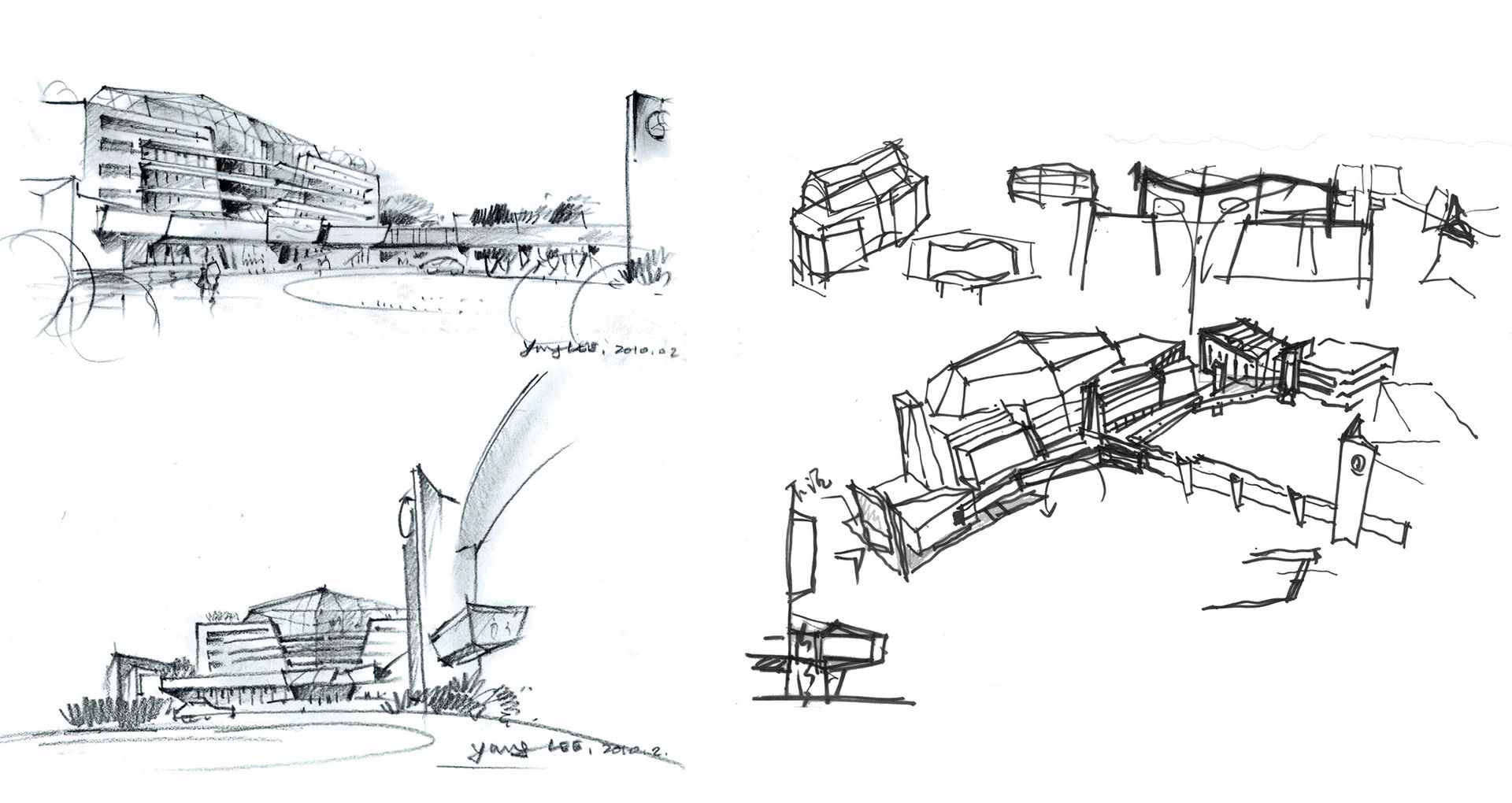 The main building adopts broken line volume. The solid "rock" volume on both sides encloses the central diamond shaped glass atrium. The internal double atrium fully introduces natural light. The two floors are separated by glass floors. The lower floor has natural lighting. The upper floor naturally discharges the heat generated by the greenhouse effect through the tight structure on the top.